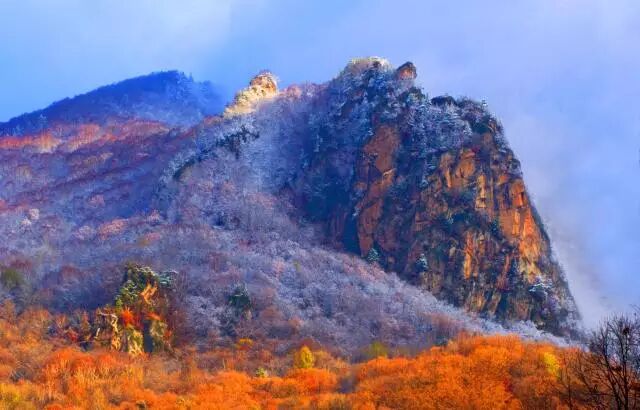 丹东凤凰山自古有“辽东第一山”的美誉。南北朝时期称“乌骨山”。贞观年间,唐太宗李世民游览此山,有凤凰飞来拜祖,太宗大悦,遂赐名“凤凰山”,迄今已有1300多年历史。南与朝鲜妙香山相望,北与本溪水洞呼应,是国家级风景名胜区、国家AAAA级旅游景区。