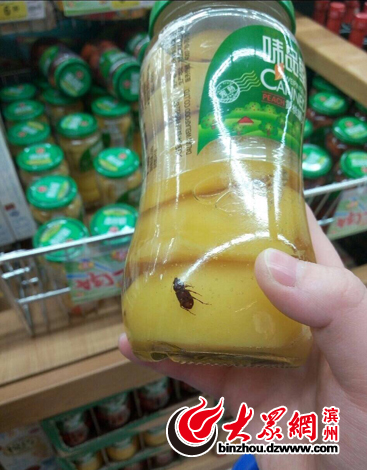 据赵女士介绍,4月16日晚,她在滨州大润发超市想买瓶罐头,随手拿了"味品堂"的一瓶黄桃罐头,让她大吃一惊的是,在罐头的底部竟然有一只像"蟑螂"的黑虫。"太恶心了,这样的罐头怎么让人放心吃啊,这还是滨州的大润发超市。"赵女士说,当时只是看到了这样的罐头,但并没有购买。
