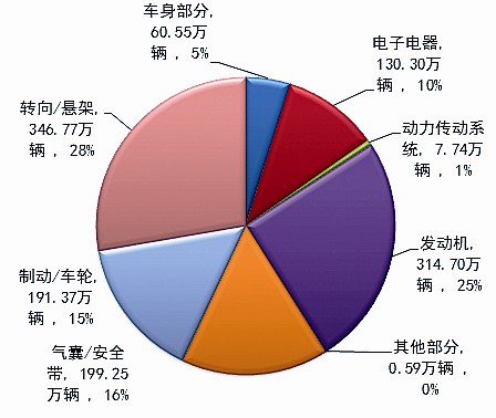 缺陷涉及总成召回数量分布