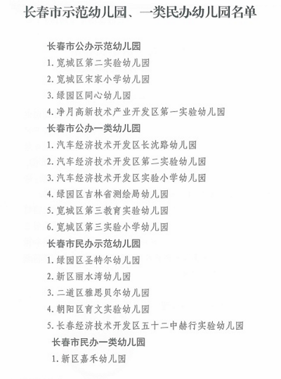 近日,长春市教育局印发《关于认定长春市示范幼儿园、一类幼儿园的通知》。